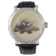Uhr, Vintage Männeruhr mit schwarzem Lederarmband