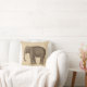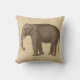 Stilkissen mit Vintag-brauner Elefantenseitenansicht auf hellbraunem "Burlap"-Hintergrund
