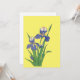 Vintage Abbildung Blumendesign mit blühenden lila Iris-Garten-Blume auf hellgelbem Hintergrund. Ein tolles Design für Ostern oder um einen schönen Frühlingstag zu feiern.