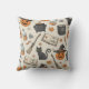A charming Halloween pattern with pumpkins in witch hats, black cats, spell books, cauldrons, and potion bottles on cream background.