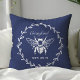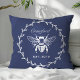 Chic trendy Vintag Honey Bee mit Laurels Monogram Kissen. Dieses umkehrbare Kissen hat ein modernes Honigwabenmuster auf der Rückseite mit eigens festgelegten Datum. Dieses Kissen ist für einen Hochzeitskaffee oder für ein hübsches Hauswärmespielgeschenk gedacht. Wählen Sie mit dem Farbwähler Ihre eigene Kissenfarbe aus.