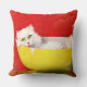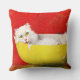 Vintage Illustrationskatze in Gelbschüssel Kissen