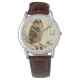 Vintage japanische Tintenzeichnung einer Eule Armbanduhr