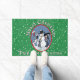 Eine Vintage ovale Vignette einer Winterlandschaft, in der Katzen Kundgebung um einen Schneemann mit Strümpfen geschmückt, schmückt diese fröhliche Begrüßungsmatte. Weihnachts Grün mit schneeweißen Punkten und Ihrem persönlichen Gruß und Familiennamen begrüßt alle auf Ihrer Zuhause mit saisonalem Beifall.