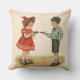 Vintage-Kinderkunst auf Kissen, die zeitlose Kindheitsmomente einfangen. Eine charmante Vintage-Illustration von Kindern, perfekt für nostalgische Kunst und Dekoration.