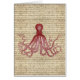 Vintage Krake Kraken vivtorian Buchillustration auf einem Vintagen beunruhigten Buchstabehintergrund.