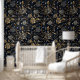 Elevate your space with the dramatic beauty of this vintage luxe bejeweled floral wallpaper. Designed with exquisite detail, this pattern features intricate metallic gold vines, pearl-like accents, and jewel-toned blossoms set against a rich midnight background — creating a stunning interplay of elegance and opulence. Perfect for accent walls, powder rooms, or any interior that deserves a bold, sophisticated touch, this wallpaper transforms ordinary spaces into extraordinary showcases of style.