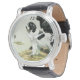 Uhr, Vintage Männeruhr mit schwarzem Lederarmband