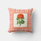 Throwkissen mit einer Vintagen Illustration einer hellen orange Blume auf einem hellen Goldpergament-Beschaffenheitshintergrund. Buntes, hohes Entschließungsdetail einer Pelargonie-Blume, von einer botanischen Zeitschrift datiert bis 1851-1865. Gerahmt mit einem Plaidwerx ursprünglichen karierten Muster im orange, heißem Rosa der Mandarine und in cremefarben.