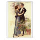 Vintage Grafik durch Tito Corbella ein paar Zwanzigerjahre Ära, das bezaubernd für eine Nacht heraus auf der Stadt gekleidet werden. Sie stehen in einer Umarmung und starren in jeder des anderen Augen mit einem schwelend Blick an. Ihr Gesicht wird bis zu seinem gespitzt, als ob sie wartete geküsst zu werden ist. Der Künstler, Tito Corbella (1885-1966), war in Pontremoli, Italien geboren und starb in Rom, Italien. Er unterzeichnete seine Grafik als "T. Corbella" und war für seine italienische Kunst-Dekoart am berühmtesten. Seine Liebe der schönen Frauen, der Mode und des Glamours ist in den mehr als 300 Bildern offensichtlich, die er malte, die auf Postkarten häufig benutzt waren. Diese Karte ist leeres Innere für Ihre eigene Mitteilung.