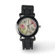 Eine Armbanduhr im eleganten französischen Paris-Stil mit einer Vintagen Collage aus dem Eiffelturm, rosafarbenen Pfannkuchen und romantischen Schmetterlingen. Sie können diese Uhr mit eigenem Text personalisieren. Verschiedene passende Produkte sind auch im Handel erhältlich.