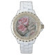 Vintage Perlen und rosa Rosenmuster Armbanduhr