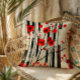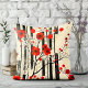 Dieses dynamische Retro-Blumendesign zeichnet sich durch kräftig rote Mohnblumen auf abstraktem Creme- und schwarzem Hintergrund aus.