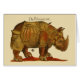 Vintage Rhinozeros - Albrecht Durer schuf 1515 den ersten Holzschnitt dieses mysteriösen Nashorns. Diese Version wurde von einem späteren Künstler, Hieronymus Bock, erstellt. Durer gründete das Vintage Rhinobild auf einer schriftlichen Beschreibung und einer schnellen Skizze eines anderen frühen unbekannten Künstlers und sah nie wirklich den Live-Nashorn. Dies war das erste Beispiel eines in Europa zeichnend Rhinos seit römischer Zeit. Dieser Vintage Rhino-Holzschnitt ist wunderbar ungenau; die harten Teller ähneln einer echten Rüstung, mit einer Brustplatte, Nieten, und verzieren so eine Rüstung eines menschlichen Ritters. Der Nashornholz wurde von vielen anderen Künstlern im Laufe der Zeit kopiert, und diese Ungenauigkeiten wurden durch drei Jahrhunderte wiederholt.
