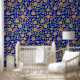 Vintage Rose Blumengelb und blaues Muster Tapete
