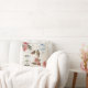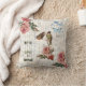 Zwei wunderschöne Vintage Vögel, die auf Ästen mit rosa Rosen stehen, ein schwacher Hauch einer Vintagen Taschenuhr, wunderschöne Vintage Libellen und blaue Schmetterlinge sind Set auf einem cremefarbenen Hintergrund mit hübscher Handschrift und blauen Touchs aus einer Vintagen italienischen Postkarte, um dieses reizende, naturgetreue, blumengeschmückte Kissen zu machen.