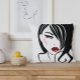 Lieblich, Retro mädchenhaft Thema in Schwarz-Weiß. Eine schöne Frau Gesicht mit roten Lippen und lockigen Haaren. Spaß, Retro zeichnend.