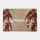 Vintager roter Pfeffer mit etwas spanischem Text " Bienvenidos " Doormat mit nostalgischem Gefühl und Burlap-Look Hintergrund . Design von Alma Wad,