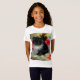 T - Shirt mit einem spielerischen Schwarz-Weiß Kätzchen! Diese flauschig tuxedo Katzenkatze Posen zwischen roten Blume auf einer blauen Decke. Ein tolles Geschenk für Katzenliebhaber und Viktorianische Kunstliebhaber!