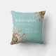 Ein sehr detaillierter zeichn einer Helmqualle (Periphylla periphylla), umgeben von Seestern (Asterias rubens larvae) des Künstler-Biologen Ernst Haeckel aus dem 18. Jahrhundert. Die geschmolzene Konsistenz einer hellen Medusa (Zygocanna undulosa) im Hintergrund fügt der Komposition eine weibliche Touch hinzu. Die Pastellgrün- und Korallenfarben bilden einen weichen Kontrast und passen elegant zu den eleganten Linien dieser wunderschönen Illustrationen, die das Shabby Chic-Interieur eines Strandes oder Landhauses leicht Anzug machen können. Die Rückseite des Kopfkissens ist in einer sanften türkisfarbenen Farbe mit anpassbarem Text gehalten.