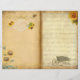 Vintages Design im alten Pergamentstil mit Sonnenblumen, Bienen, antiken Rollkarren und Musiknoten. Dieses Collage Style Papier wird als Doppelseitenauflage gefertigt, sodass Sie bei einer 8,5 x 11 Zoll-Option nur halbieren müssen, und für Ihre Kreationen schöne Vintage Journalseiten haben. Die Rückseite dieses Papiers hat ein passendes altes Design mit Linien für Ihre Gedanken und Notizen. Vintagere Designs und Scrapbook-Verzierungen sind in unserem Zazzle-Shop erhältlich, ebenso wie viele andere Stile von Scrapbook und Zeitschriften. Für beste Ergebnisse wählen Sie ein mattes, texturiertes Papier. BITTE BEACHTEN SIE: Dies ist keine eigentliche Collage. In Fotoshop werden die Effekte auf Papier und Fallschirme erstellt.