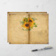 Hübsche Sonnenblumenanordnung auf altes Pergament-Effekt-Papier, mit verblassten Spitzen-Mustern und alter Postkarte. Dieses Collage Style Papier wird als Doppelseitenauflage gefertigt, sodass Sie bei einer 8,5 x 11 Zoll-Option nur halbieren müssen, und für Ihre Kreationen schöne Vintage Journalseiten haben. Die Rückseite dieses Papiers hat ein passendes altertümliches Pergament-Design mit schwachen Linien für Ihre Gedanken und Wünsche. Vintagere Designs und Scrapbook-Verzierungen sind in unserem Zazzle-Shop erhältlich, ebenso wie viele andere Stile von Scrapbook und Zeitschriften. Für beste Ergebnisse wählen Sie ein mattes, texturiertes Papier. BITTE BEACHTEN SIE: Dies ist keine eigentliche Collage. In Fotoshop werden alle Effekte auf Papier und Fallschirme erstellt.