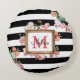 Vintage Streifen und Floral Monogramm Rundes Kissen