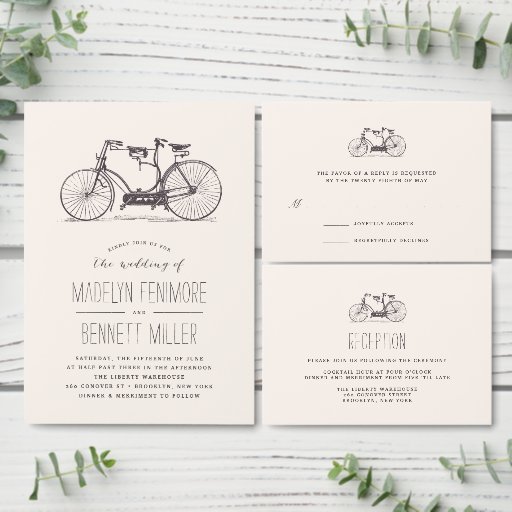 fahrrad für zweitandem fahrradvintages fahrradthemavintages fahrradsepiatoncoolsonderbarniedlichaufnahmekarteeinladung zur hochzeit