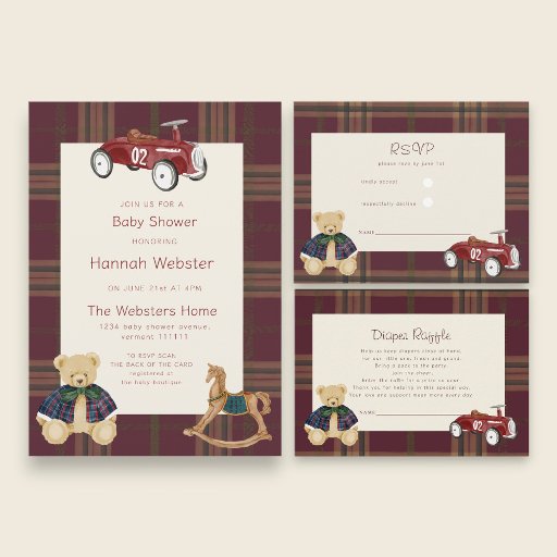 vintage toys red plaid baby showerDesignt von Janine Cooper