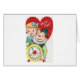 Niedliches Vintages Valentin mit einem Mädchen und einem Clown