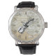 Uhr, Vintage Männeruhr mit schwarzem Lederarmband