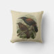 Quadratisches Kissen mit einer schönen Vintagen Illustration eines hohlrückigen Pferds und des Jack-Vogels durch J.G. Keulemans von einer Geschichte Walters Bullers der Vögel von Neuseeland, zuerst im Jahre 1873 veröffentlicht.
