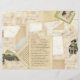 Fügen Sie eine Touch ooh la la la mit dieser Collage aus Vintagen Papieren, Umschlägen und Weihnachtspostkarten hinzu, einschließlich eines Umschlags, der mit heiligen und anderen Winterpflanzen gefüllt ist, einer Französin, die einen winzigen Weihnachtsbaum und einen schönen Kiefernhain mit Nadelkronen hält. Authentische französische Postkarten und Schrift.