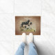 Vintagen Neufundland-Hunde in Burlap Look Background . Die antike Illustration wurde von Alma Wad bearbeitet und auf diesem Artikel angewendet. Rustikale Türmatte für ein Hundefreund Zuhause . Sie können den Text "Willkommen " jetzt anpassen .