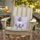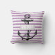 Schwarzer Anker auf Lavendel lila-weiße Streifen nautische Sommer werfen Kissen im Freien. Dieses schicke nautische Design zeigt einen Vintagen Stilanker und Ihren Namen auf einem weißen Rahmen. Wenn Sie wollen, können Sie den Namen, Rahmen oder/und Anker entfernen, um nur ein gestreiftes Kissen haben.