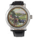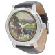 Uhr, Vintage Männeruhr mit schwarzem Lederarmband