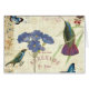 © Alain Pelletier/wildes Apple. Das Bild zeigt einen Vintagen Blumenstrauß der blauen Blumen mit Vögeln und Schmetterlingen. Eine Briefmarke, eine Postkarte, etwas Text und andere Einzelteile können auf dem Bild auch gesehen werden.