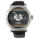 Uhr, Vintage Männeruhr mit schwarzem Lederarmband