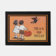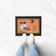 Das war ursprünglich eine Vintage Halloween-Postkarte, aber ich verwandelte sie in eine klassische Halloween-Tormatte. Illustration ist ein Junge und Mädchen Trick oder Behandlung mit einem Jack o' Laterne. Eine Hexe fliegt über den Himmel.