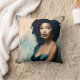 Genießen Sie Ihre Zuhause mit einer Touch des klassischen Hollywood-Glamours mit unserem Kissen, das ein Vintag inspiriert, elegantes Porträt einer Schwarzen mit raffinierten Curls, auffallenden Roten Lippen und blendenden Ohrringen zeigt. Ideal für einen luxuriösen und zeitlosen Look in Ihrem Wohnzimmer oder Schlafzimmer.
