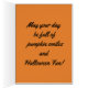 Cute, vintage card with boy, his dog and pumpkins, is featured on this Halloween greeting card. Front of card reads, "A Happy Halloween" while the inside reads, "May your day be full of pumpkin smiles and Halloween Fun! Ich bin Carte to send to a child for Halloween.