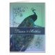 Vintager, romantischer Pfauentwurf in weichem Grüntöne-, aquamarinem, Blauem und perligemlila. Dieser schöne Pfau mit seinem reizenden Pfaufeder-Schwanz wird durch weiche Rosen und ein halb transparentes Akzent-Bar mit Grenze betont. Fügen Sie leicht Ihre eigenen Namen oder anderen Text diesem Entwurf hinzu.