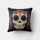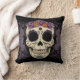 Schöner Tag des toten Zuckerschädels umgeben durch lila Rosen. Ändern Sie Hintergrundfarbe oder addieren Sie Text, um dieses Kissen zu personifizieren. Schaut auf dunklem Lila auch groß!