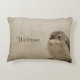 Ein bezauberndes Kopfkissen, das auf der einen Seite Willkommen und auf der anderen Seite "Sit Awhile" sagt.