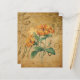 Liebliche Orange-Lilchnis-Illustration auf einem altertümlichen Hintergrund mit schwachen Musiknoten und alter postalischer Briefmarke. Herrliche warme Herbstfarben. Dieser Blumenschrott passt zu unserer Rustic Floral Journal Collection und eignet sich perfekt für Herbstzeitschriften. Die Rückseite des Papiers hat das gleiche Design. Diese vielseitigen Arbeiten bilden einen schönen Hintergrund für Scrapbook und können in Junk-Journals, Collagen und rustikalen Foto-Alben aufgenommen werden.