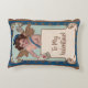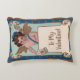 Leicht zu individualisieren Valentinstag Kissen! Vintage Illustration Viktorianisch Happy Valentine's Day-Design mit einem Chalub mit einem Mailman, der die Post, Liebe Briefe an mein Valentine. Antike Liebe und romanische Ephemerien. Ein goldener Zierrahmen, umgeben von goldenen Herzen auf blauem Hintergrund.