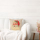 Vintager Weihnachtsmann stellen Kissen auf einem Hintergrund gegenüber, der Teefleckgewebe im hellen Tan ähnelt. Front und Rückseite des Kissens hat den gleichen Entwurf.
