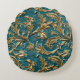 Vintages Aquamarines goldgeprägtes Glattleder Rundkissen.