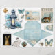 Dieses zweiseitige Papier zeichnet sich durch eine blaue Rose Vintage Ephemeride aus. Es ist perfekt für Scrapbooks, Junk Journals, Kartenmachen, Collagen und vieles mehr. Dieses Papier ist Nummer zwei von einem Set von vier.