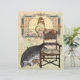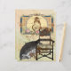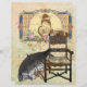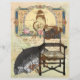 Vintager Stuhl mit aufwändigem Blue Label und schwarzem Spitzenschirm mit Schmetterlingskript über. Gold und grünes altes Papier auf der Rückseite